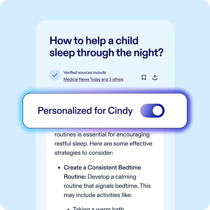 It's an AI-powered health information experience that helps you explore health topics and symptoms—offering clear answers from trusted medical sources to better understand your health. Create an account to personalize your answers.